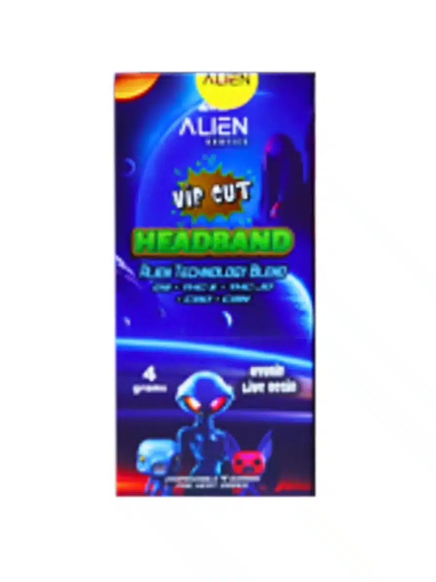 Enter a state of calm concentration with the Headband Alien Exotics VIP Cut Series Disposable 4G. This high-end vape contains 4 grams of premium live resin, highlighting the unique effects and creamy, smooth flavor of the Headband strain. Known for its signature head pressure sensation, this strain delivers deep relaxation while enhancing mental clarity, making it ideal for those looking to unwind while maintaining sharp focus. Enjoy a top-tier experience with every puff.